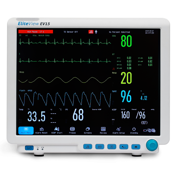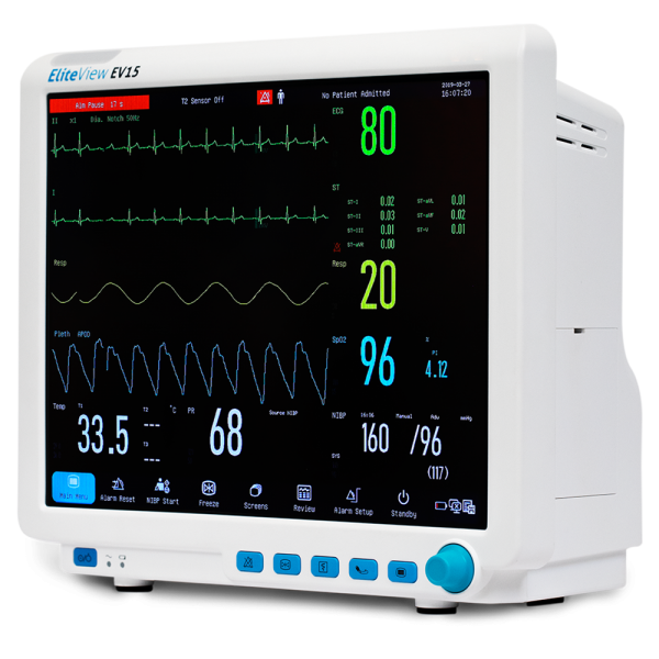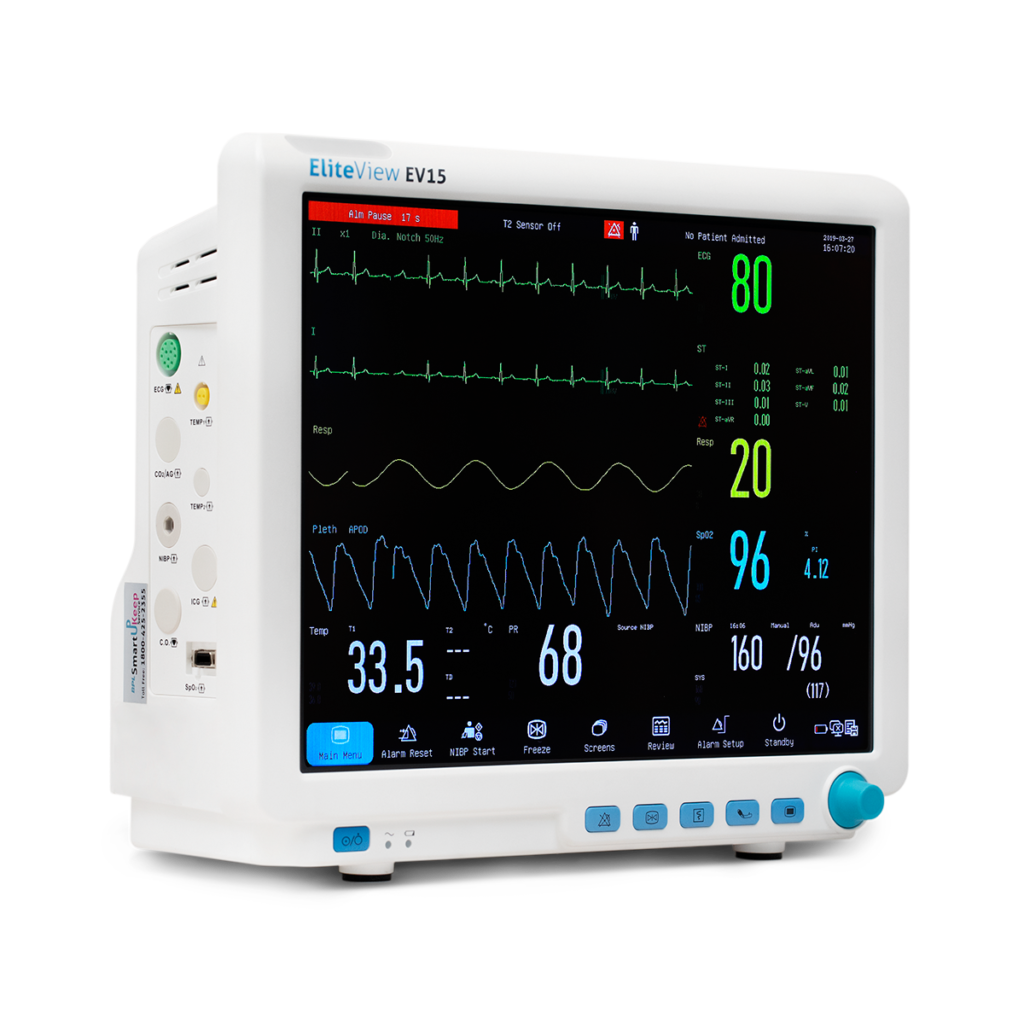 EliteView EV15 is a 15″ multipara patient monitor that provides flexible monitoring solution in various clinical environment. In addition to standard parameter monitoring, EliteView EV15 provides advanced parameter monitoring options such as IBP, CO2, Gas Monitoring, Cardiac output, BIS monitoring & ICG to meet varied and specific requirement.