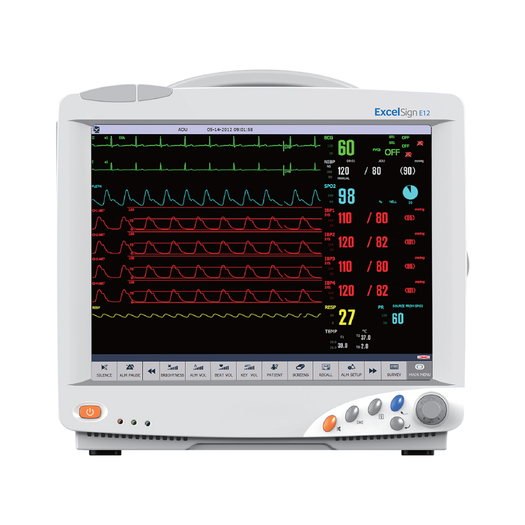 ExcelSign E12 is modular multipara monitor well-suited for high acuity and operating room environment. It comes with a 12″ high-resolution color LCD touchscreen display and offers advanced parameter modules such as IBP, CO2, Gas Monitoring, cardiac output, BIS, NMT, ICG and Respiratory Mechanics. Experience great flexibility and reliability with BPL ExcelSign E12.